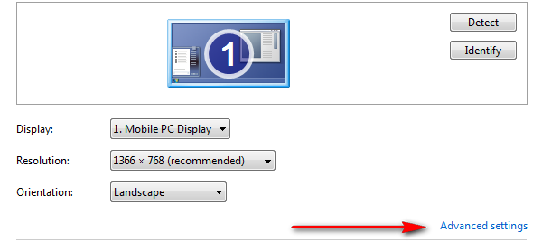 Bước 2: Chọn Advanced Settings (chế độ tùy chọn nâng cao) như trong hình (đối với Win XP có thể là tab cuối cùng).