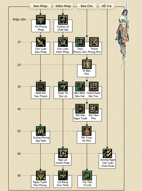 Võ Đang chính phái và Côn Lôn trung lập đều là đạo này. Võ Đang chú trọng tu luyện nội công và kiếm thuật, Côn Lôn lại tập trung vào đạo thuật truyền thống.