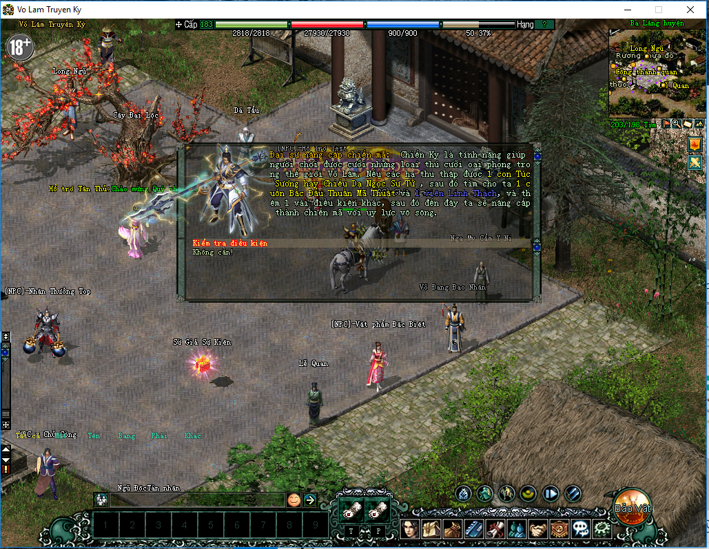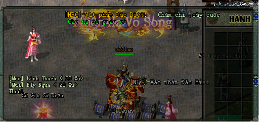 Quý nhân sĩ có thể Kiểm tra xem mình có đủ điều kiện và các nguyên liệu cần thiết để ép ngựa và phải có 1000 vạn lượng mới có thể vào Chức năng ghép ngựa được (Lão ghép ngựa này phải nhìn thấy ai có tiền cơ..