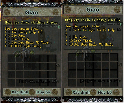 Sau Khi đã đủ điều kiện Quý Nhân Sỹ có thể tiến hành ghép 2 loại : Ngựa thông thường và Ngựa Hoàng Kim