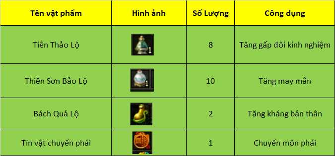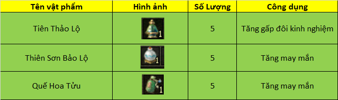 Nội dung : Các phần quà được nhận từ GiftCode Tân thủ: