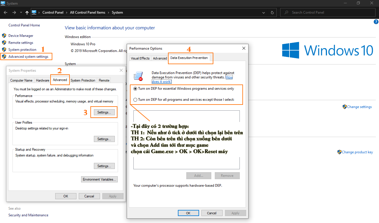 Ra ngoài màn hình Desktop và chuột phải vào My Computer (Win 7) hoặc This PC (Win 10) chọn Properties rồi làm theo hình