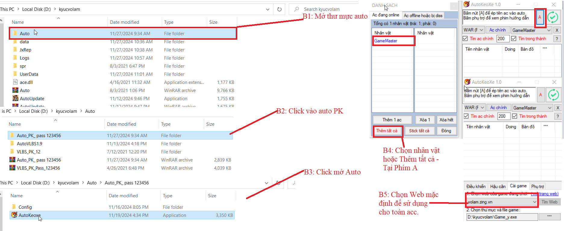 Đối với Auto PK - Chặn kéo xe liên máy (sử dụng giống auto Kim Yến - Dùng chung cho cả Sever quý nhân sỹ chỉ cần: